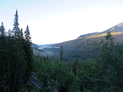 Alma was my set up for a relatively easy climb to my first Continental Divide high mountain pass...Hoosiers Pass, elevation 11,542'. The rest of the day was 48 miles mostly descending, passing through Breckenridge and following the Blue River on a nearly 20 mile greenway that was crowded with locals and summer families on holiday. Further down road from Breckenridge I pulled over to speak to a stopped bicyclist studying the turn that would take me to that night's camp...it was Carl who I shared a small United Methodist church curtesy of Pastor George back in Palmyra, VA nearly six weeks ago. He had detoured to St. Louis and I for a recuperative return to Asheville, and here in the eastern Colorado mountains we reconnect for an evening ride together. A pleasant surprise for both. Carl appreciates the Virginia mountains and the Colorado Rockies more than other aspects of the route...I concur.